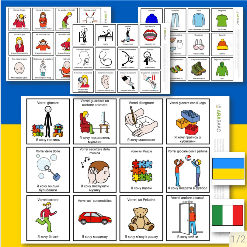 Anche il portale ARASAAC ha approntato una sezione di tabelle di comunicazione per l’accoglienza dei rifugiati ucraini che non parlano la lingua dei Paesi che li hanno accolti.