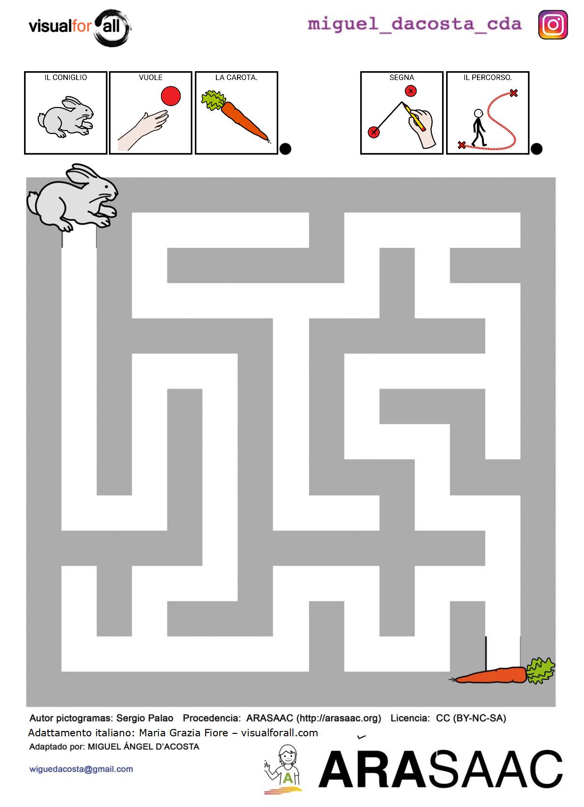 Per questo ho tradotto in italiano i labirinti prodotti da Miguel Ángel D’Acosta Balbín e pubblicati sul portale ARASAAC.