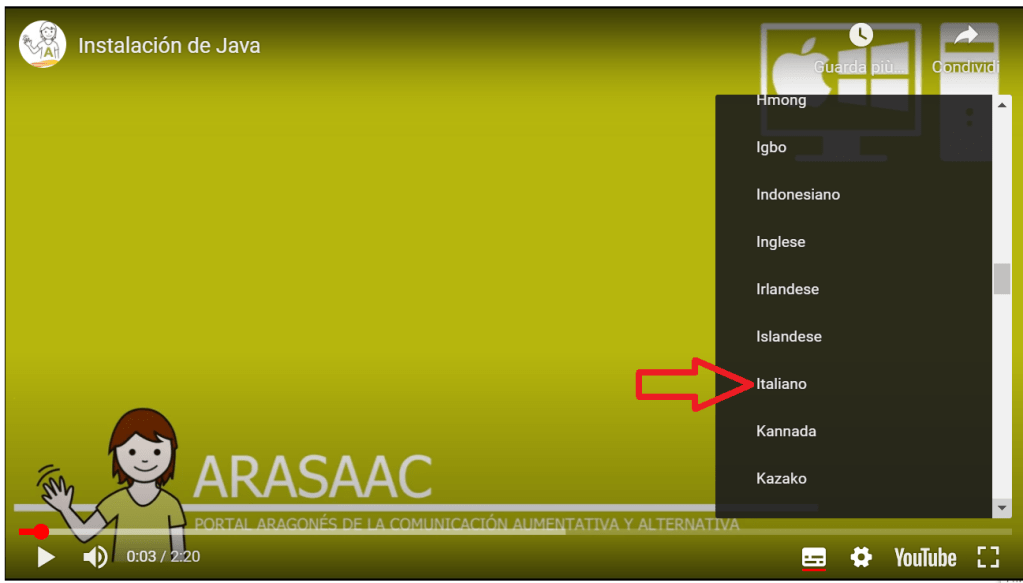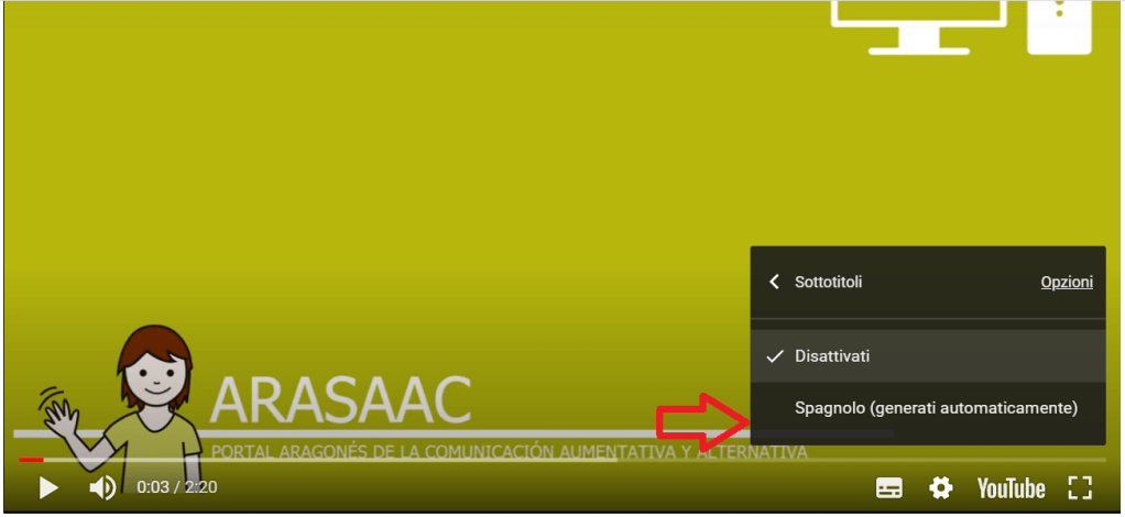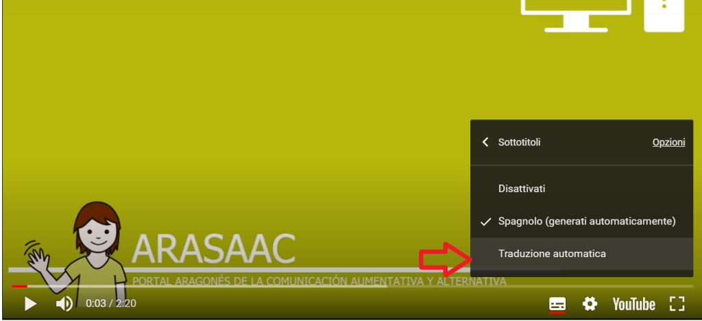 Per quanto riguarda i video, basta che voi attiviate i sottotitoli in italiano, come mostrato dalle immagini sotto.