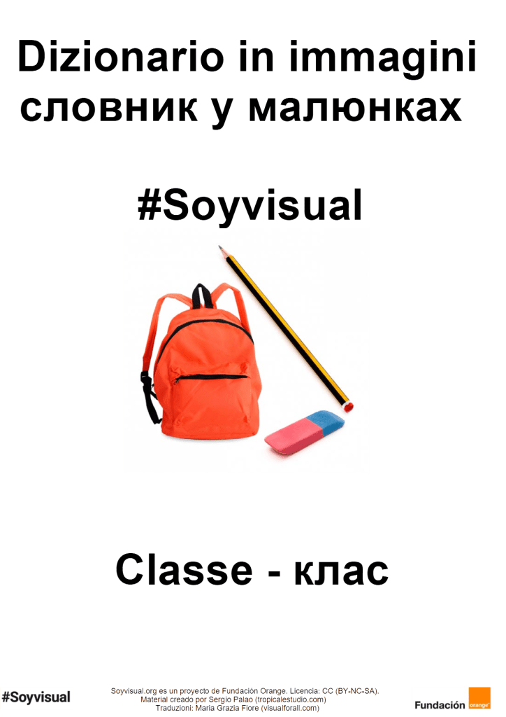 Il vocabolario è suddiviso in diverse schede: messaggi più importanti, vestiti necessari, visita medico/farmacia, supporto scolastico (voti in classe, materiale scolastico, annunci di insegnanti e studenti, programma delle lezioni). Nel tempo verranno create nuove tabelle per supportare i bambini, in particolare durante le loro varie attività.