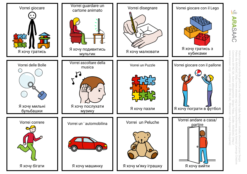 - COMMUNICATION BOARD: ENGLISH-UKRAINIAN / KOMUNIKAČNÁ TABUĽA: АНГЛІЙСЬКО-УКРАЇНСЬКА (inglese-ucraino)